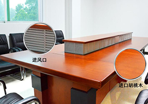 麻豆视频官网康設計的會議室桌麵空氣淨化器,外觀造型漂亮,可容納多人同時煙霧吸收,桌內機身的風扇能源源不斷將煙霧廢氣空氣抽入,然後通過另一出口的導流片均勻地把被淨化過的空氣散開,這也就是對於桌麵空氣淨化器來說最重要的一點。